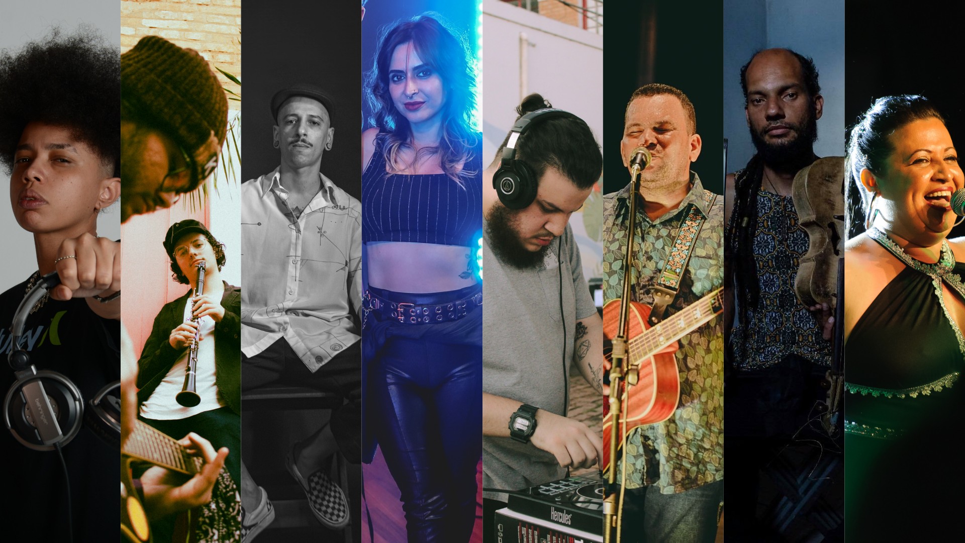 Evento será neste sábado (5) e domingo (6), a partir das 17h, em Presidente Prudente (SP). Da esquerda para direita, Alliblack, Kafikianos, Mateuzinho Umbigaê, The Wick, Dj Rzto, Ivan Laurindo, Manueltu Marreta & Bando Banda e Elly Guimarães se apresentam neste sábado (5) e domingo (6) no projeto Som da Casa, em Presidente Prudente (SP)